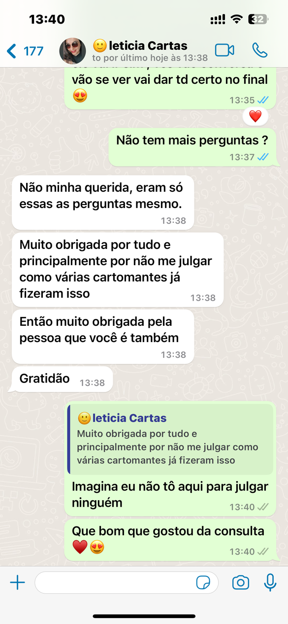 Fique à vontade para tirar suas dúvidas, sou breve e direta, com sigilo absoluto. Agende agora mesmo sua consulta, e descubra o que está atrapalhando seu caminho para a sua felicidade completa.